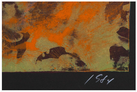 Untitled from 1984 is a vibrantly colored lithograph on black paper. It is signed, dated and inscribed A/P for artist's proof in white pencil along the bottom. Pristine condition. Image H8" x W20”, black sheet H14 ½" x W26”, framed H17 ¼" x W28 ¾” with plexiglass.